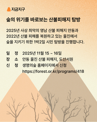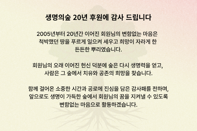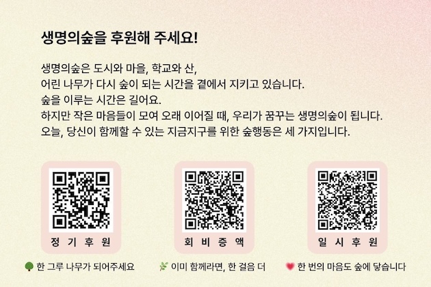 고맙습니다. 소중한 후원금으로 건강한 숲을 만들겠습니다.